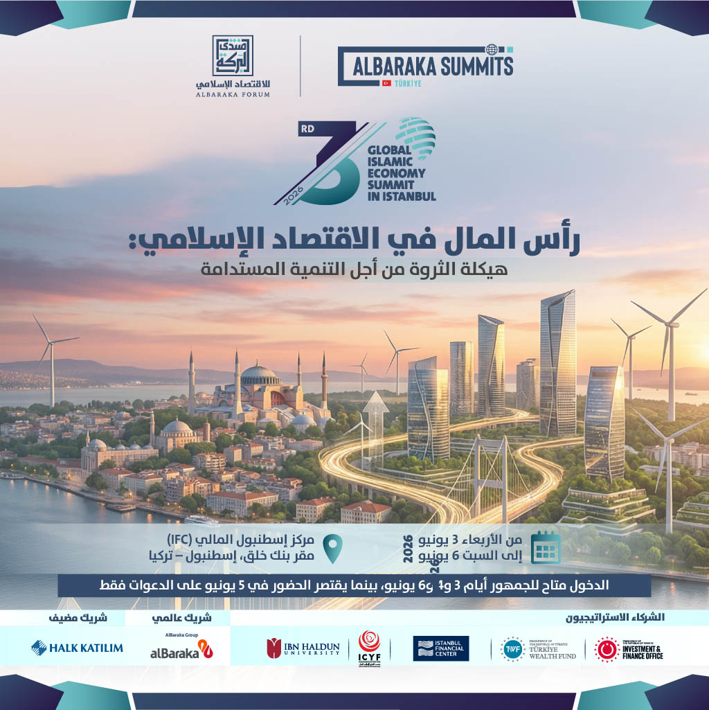 تحت رعاية رئاسة جمهورية تركيا، تُعقد القمة العالمية الثالثة للاقتصاد الإسلامي في إسطنبول، ضمن سلسلة قمم البركة في تركيا، خلال الفترة من الأربعاء إلى السبت، 3–6 يونيو 2026، في مركز إسطنبول المالي (IFC)، مبنى بنك هالك – إسطنبول، تركيا.